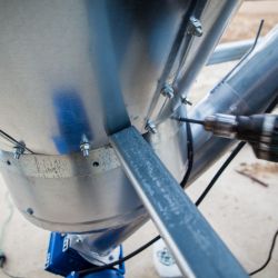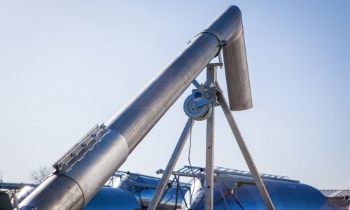Idealna pod załadunek paszowozu Długość żmijki została dobrana pod wysokość paszowozu i TIRa. Żmijka zamocowana jest na elastycznych linkach odpornych na uderzenia. Mocowanie na sztywno mogłoby uszkodzić silos.