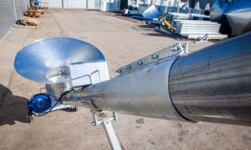 Turbożmijka rozładunku Montowana jest na stałe pod silosem. Wydajność : 17 t/h (zboże) , 10-12 t/h(pasza / śruta).