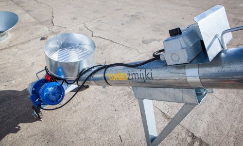 Jest to żmijka zamocowana na stałe do rozładunku silosu paszowego. Metalowy kosz i mocowanie na linkach sprawia , że żmijka odporna jest odchylenia spowodowane zahaczeniem przez inny pojazd. Turbożmijka ma 6 m i z powodzeniem wystarcza na załadunek wysokiej przyczepy, paszo wozu lub TIRa. Przenośnik ślimakowy zakończony jest 50 cm wysypem, dzięki czemu idealnie trafisz do komory paszowozu. Żmijka ta nie jest łożyskowana dlatego idealnie sprawdza się do paszy. Łożyska nie są zaklejane przez zatłuszczoną paszę i nie trzeba czyścić żmijki . Wydajność dla zboża 17t/h , dla paszy 12-15t/ , przy śrutach 10-12 t/h. Żmijka ta ma zwiększona prędkość obrotów 800 ( zamiast 400 ), dzięki czemu osiąga realną wydajność 17t/h przy załadunku silosu do 10 m.